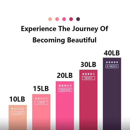 Multiple Resistance Levels: The set includes a variety of resistance levels, with the lightest band (Light Pink) being perfect for beginners who are just starting their fitness journey or focusing on flexibility and gentle strength-building exercises.